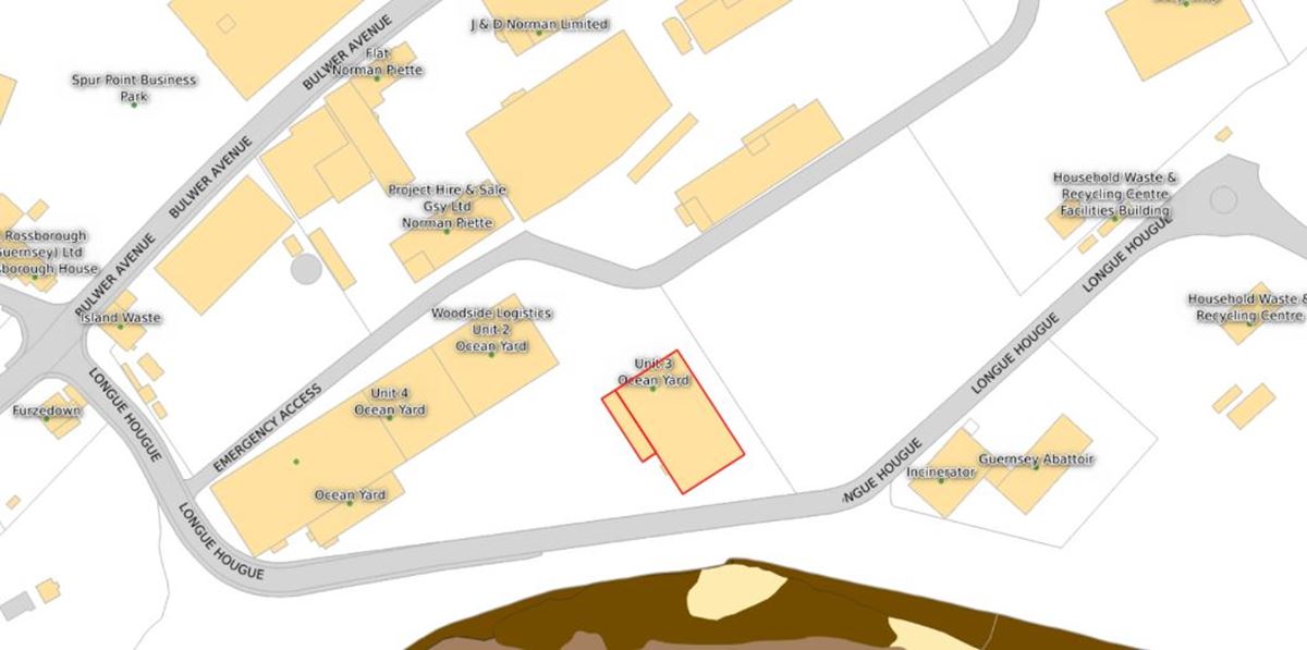 The property is situated at Ocean Yard just off Bulwer Avenue along a main container route. It is therefore within the heart of an industrial area along the main arterial route connecting the Bridge to St. Peter Port. Neighbouring occupiers include Norman Piette, Ferry Speed, Duquemin & Ozanne, Project Hire and CAMS Hire.