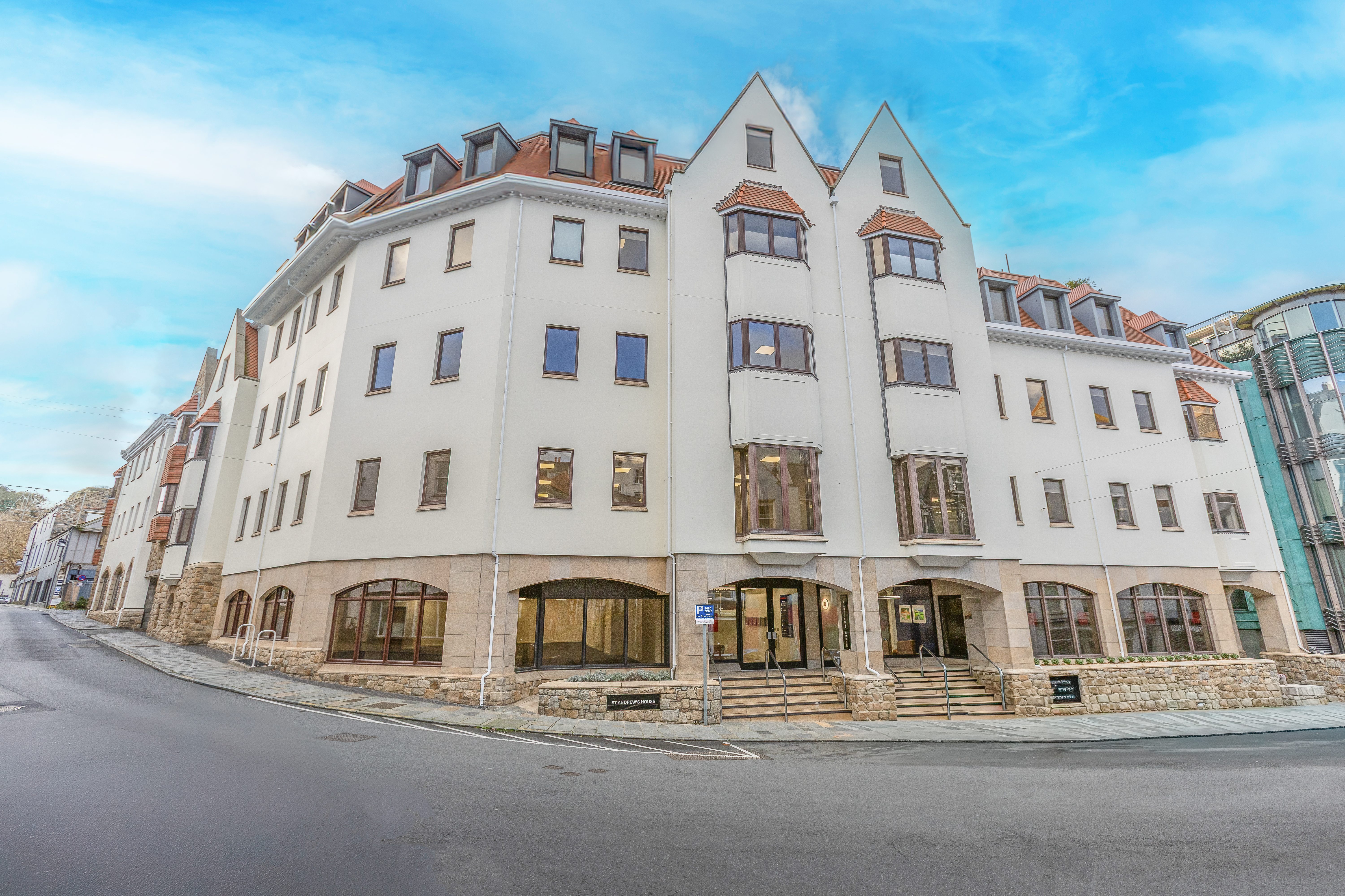 The Three Saints consist of St Martin's House, St Andrew's House and St Peter's House. Buildings are located on Le Bordage, one of the arterial routes linking St Peter Port with the south and south western parishes. It forms part of an established office location and sits within walking distance of St Peter Port's High Street and the amenities it has to offer. Other bars and restaurants in the vicinity include Alba, Lola, Salt, Two Frenchies and Camilla's Cafe,